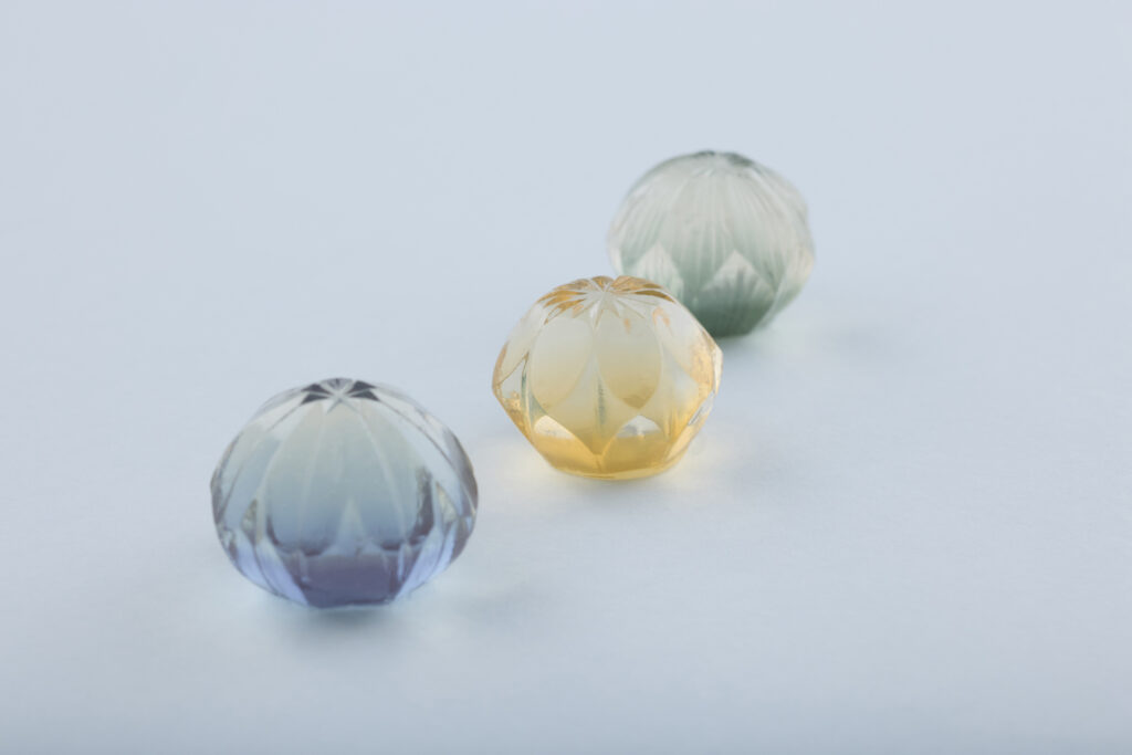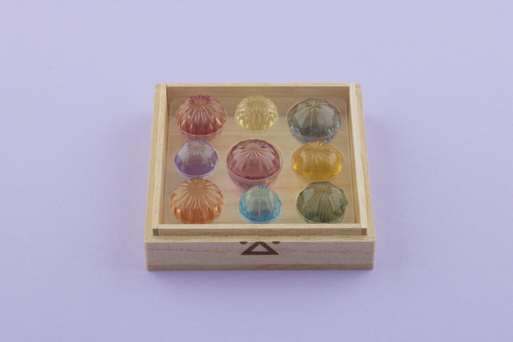 琥珀糖は砂糖の再結晶化により透明度が少しずつ失われていきますが、品質には問題はなくその変化もお楽しみいただけます。アートピースを食べる、魔法のようなお菓子です。